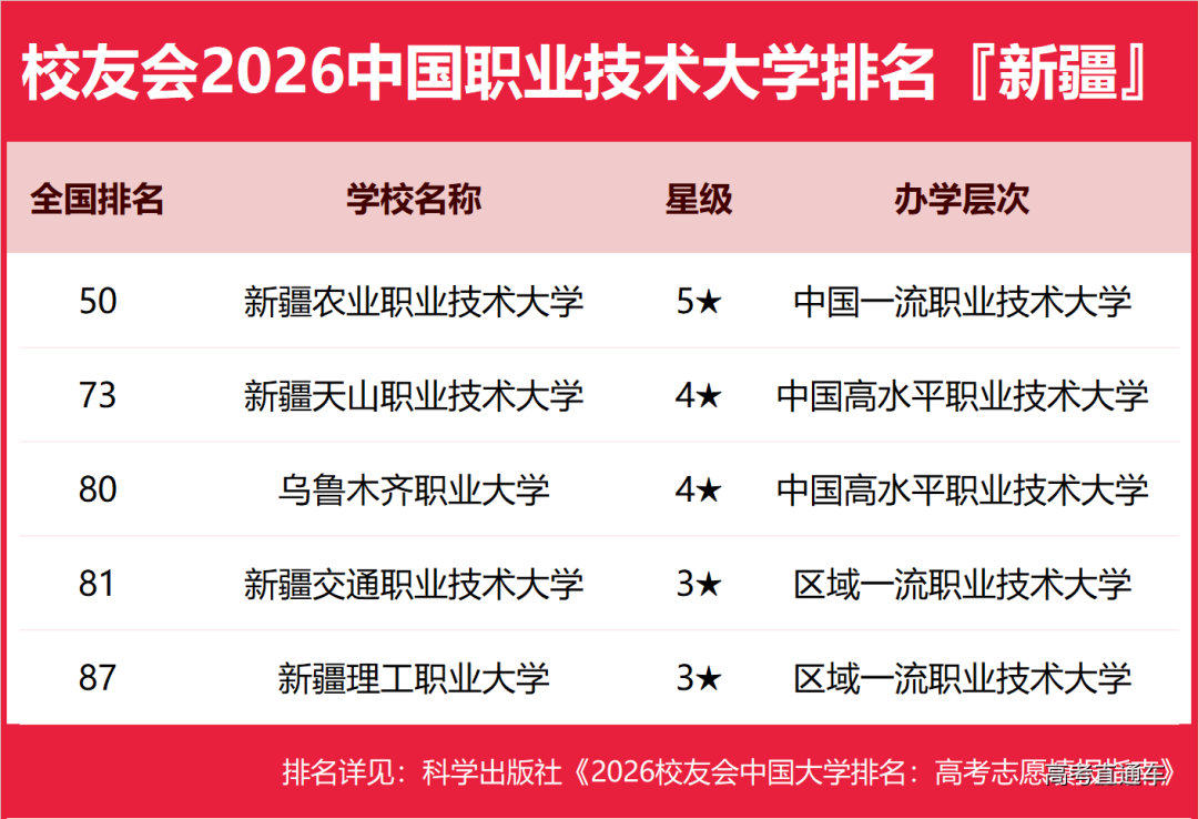 新疆农业职业技术大学位居2026新疆维吾尔自治区职业技术大学排名榜首