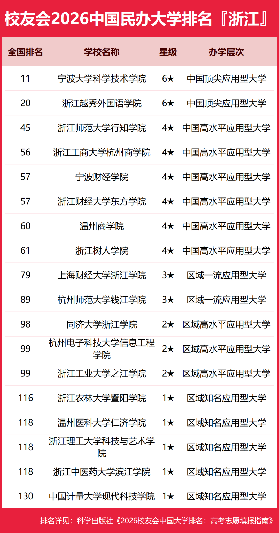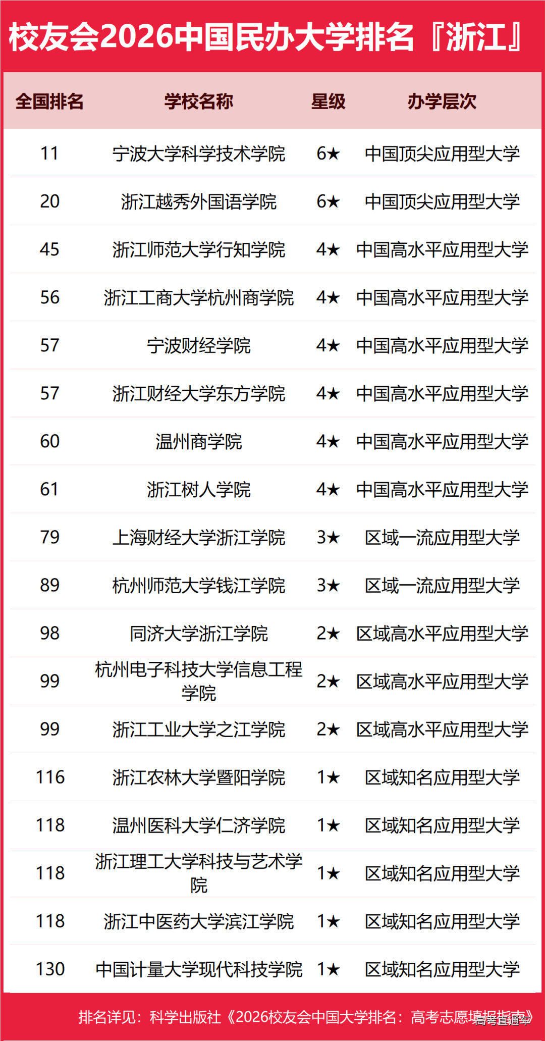 宁波大学科学技术学院位列2026浙江省民办大学排名第一