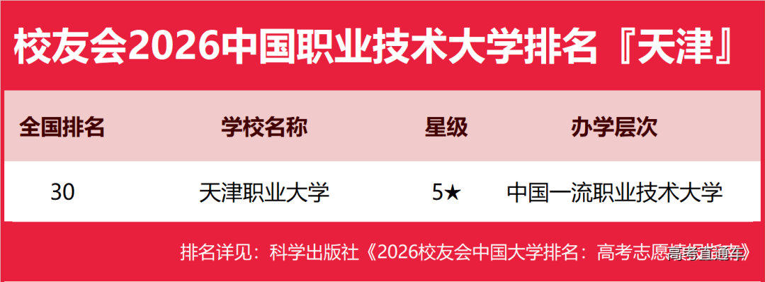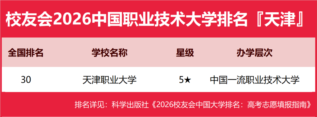 天津职业大学位居2026天津市职业技术大学排名榜首
