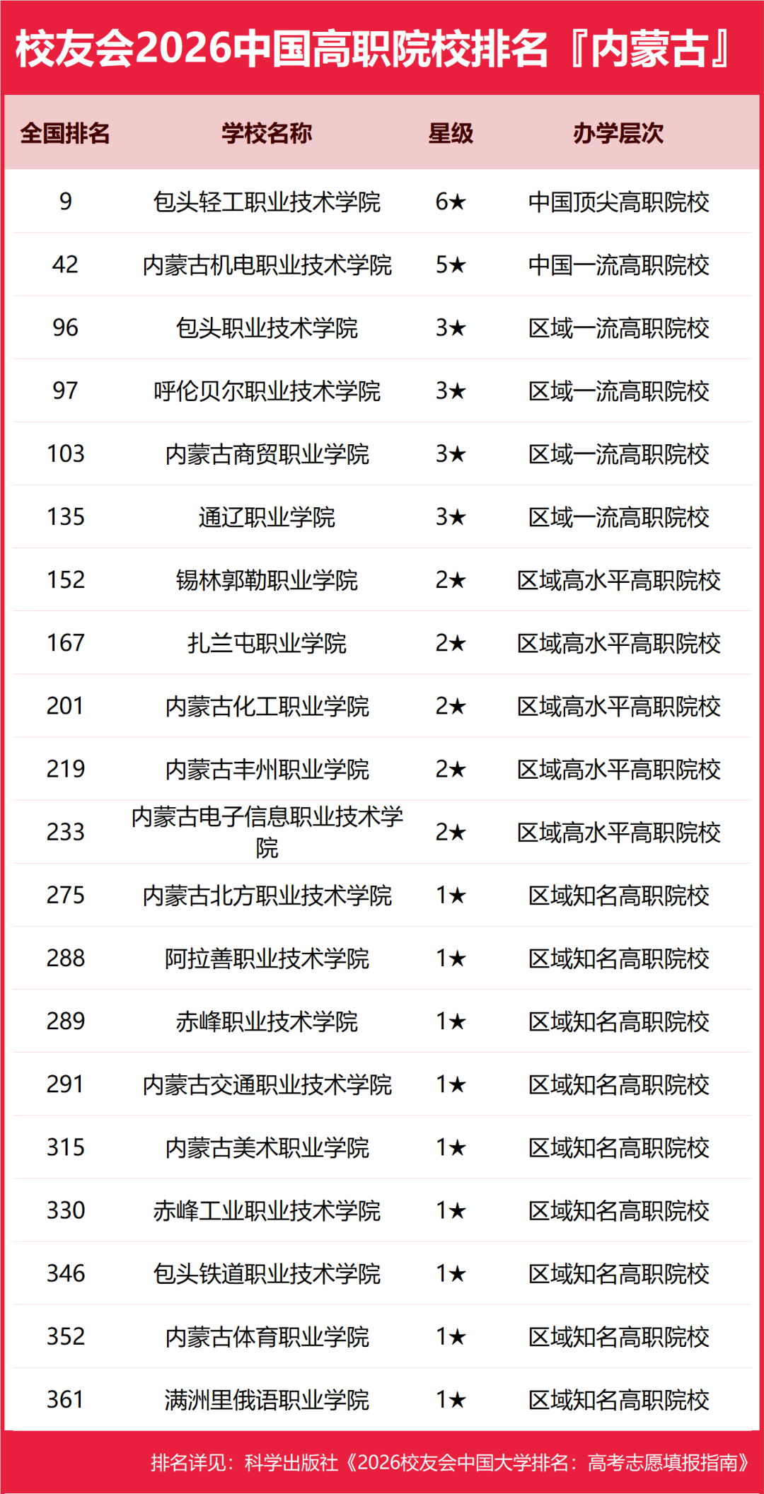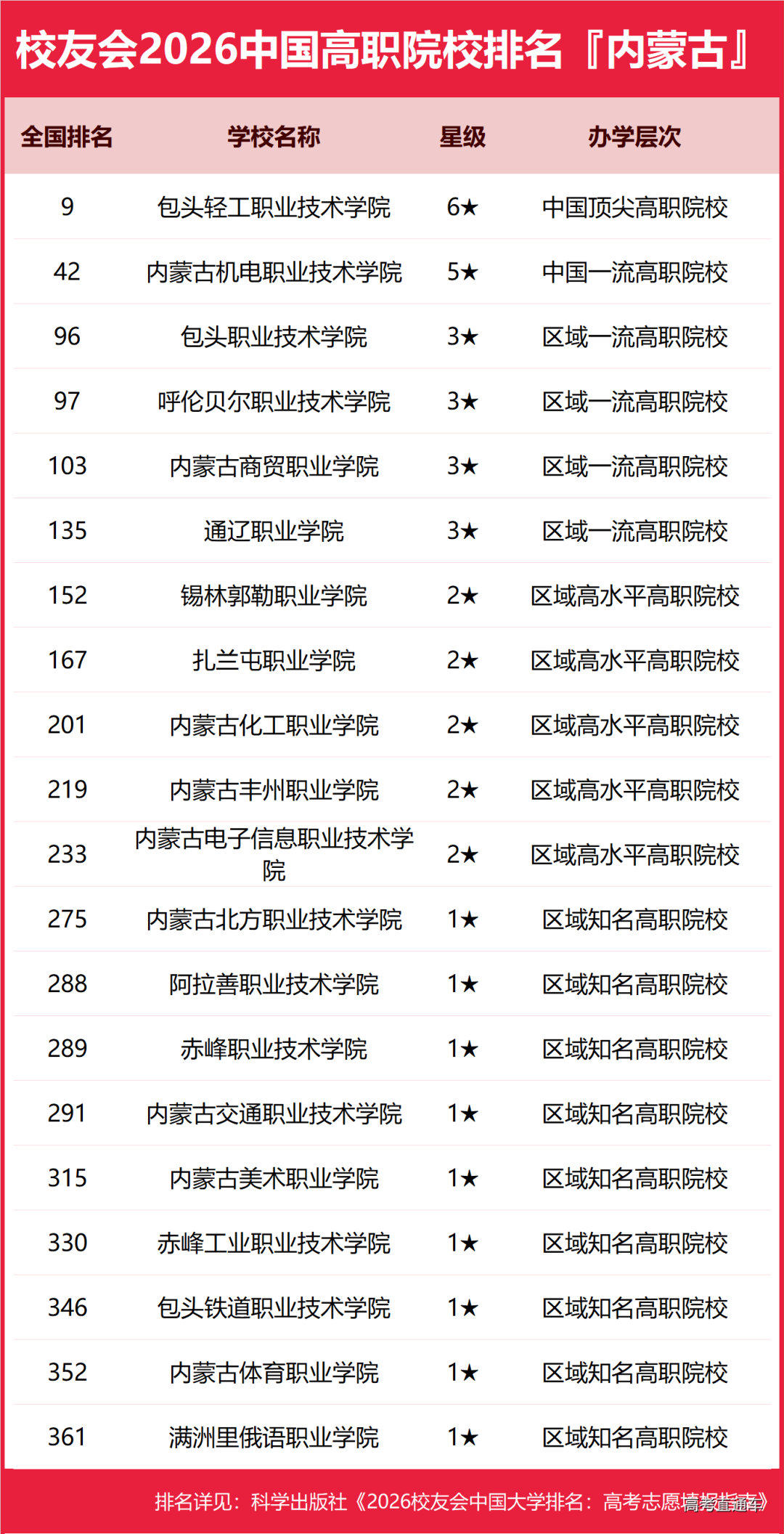 包头轻工职业技术学院问鼎2026内蒙古自治区高职院校排名冠军