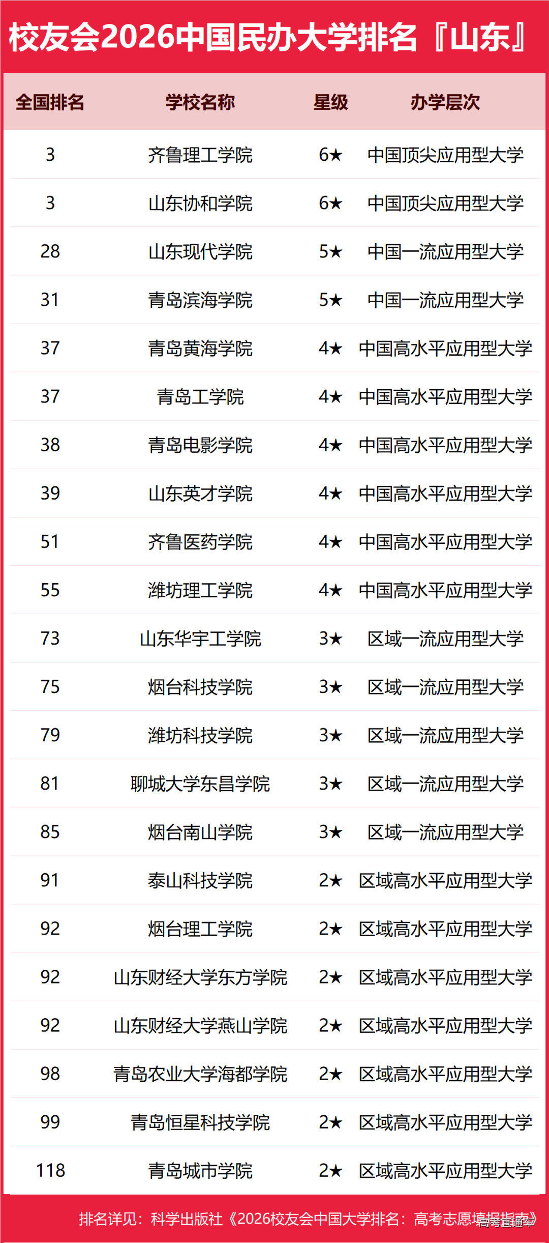 齐鲁理工学院、山东协和学院2026山东省民办大学排名并列第一