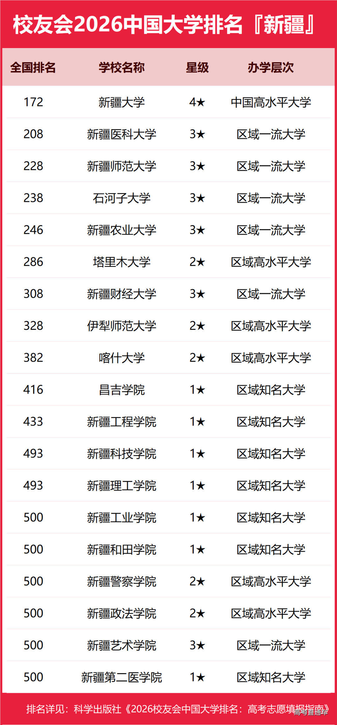 新疆大学问鼎校友会2026新疆维吾尔自治区大学排名首位