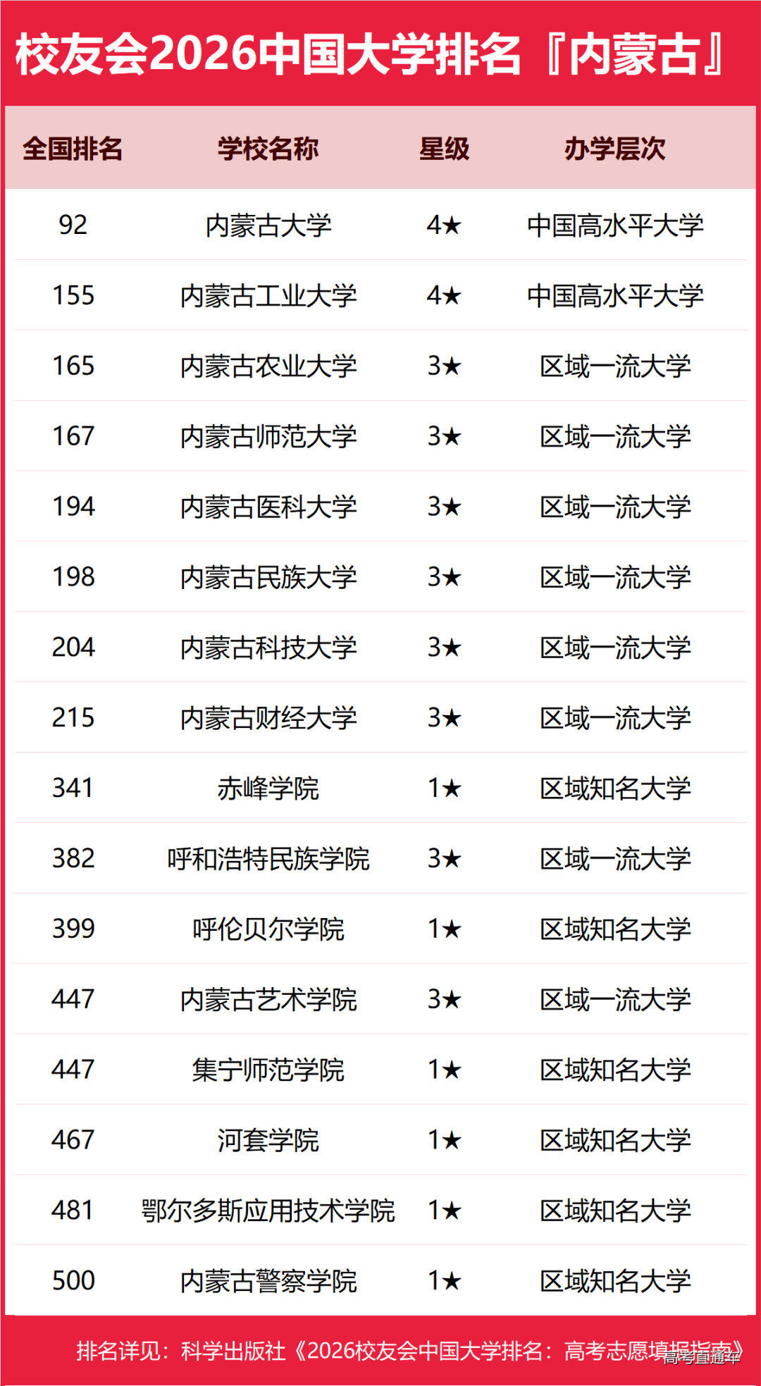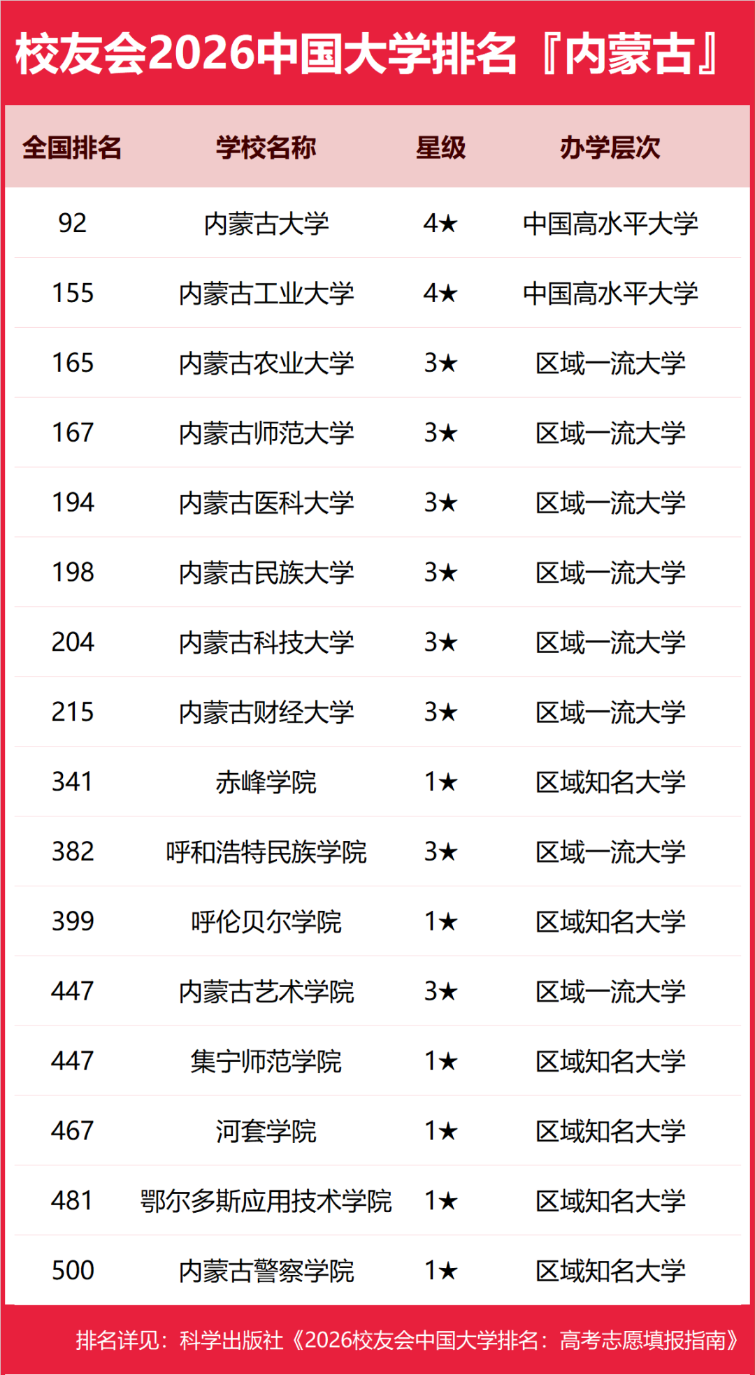 内蒙古大学问鼎校友会2026内蒙古自治区大学排名首位