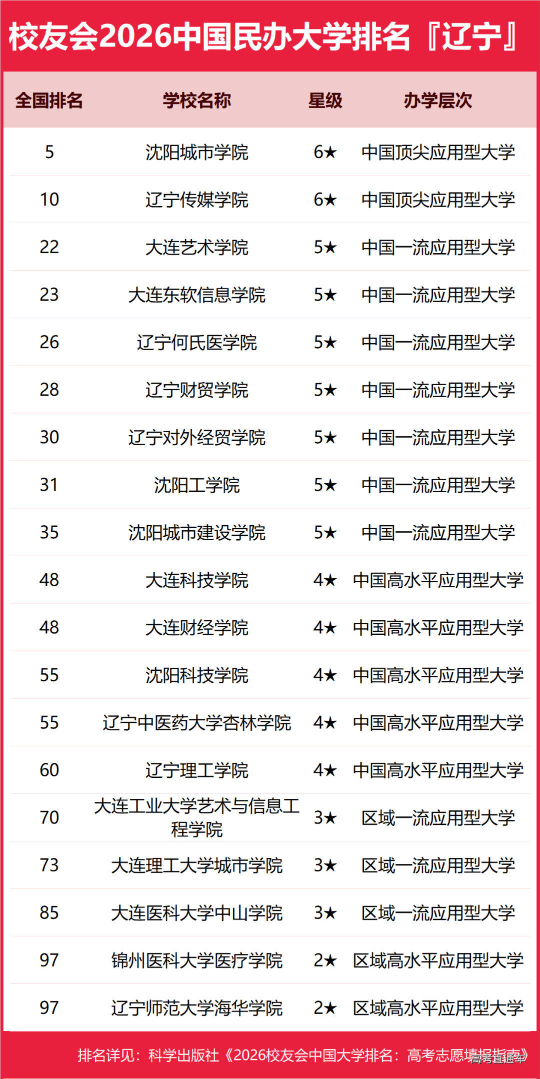 沈阳城市学院位列2026辽宁省民办大学排名第一