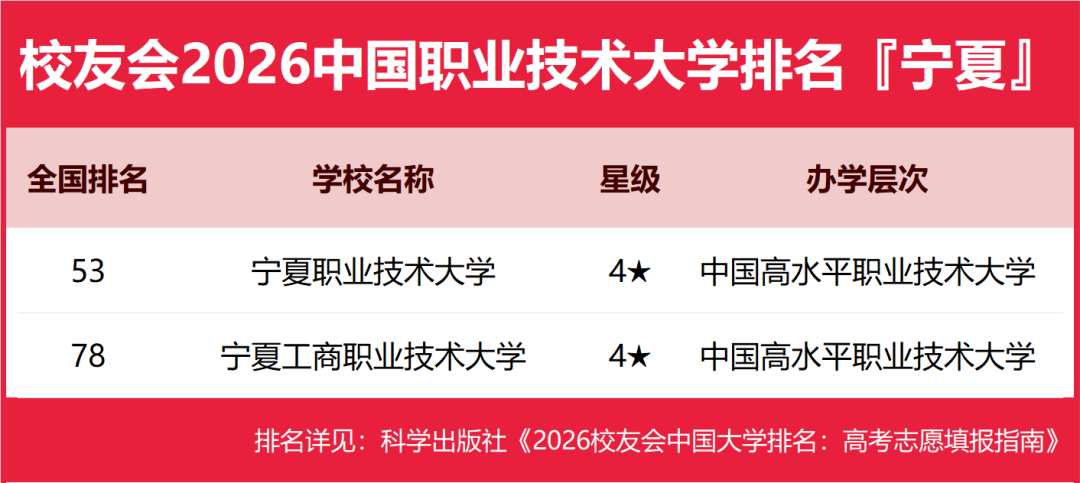 宁夏职业技术大学位居2026宁夏回族自治区职业技术大学排名榜首