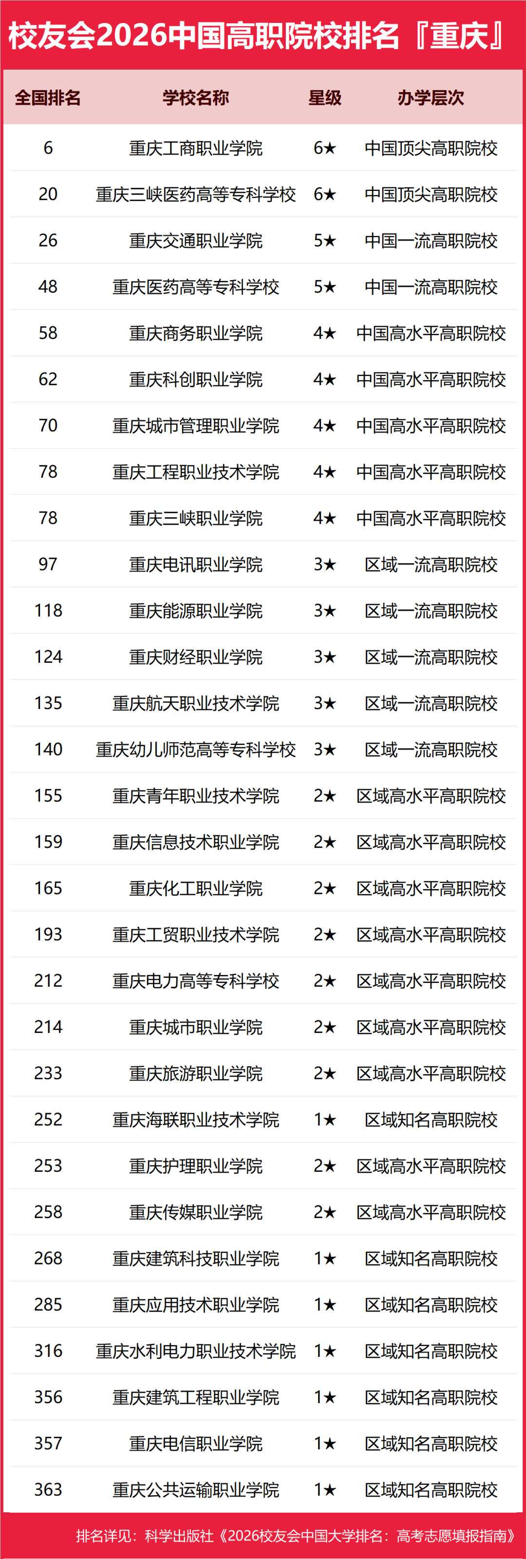 重庆工商职业学院问鼎2026重庆市高职院校排名冠军