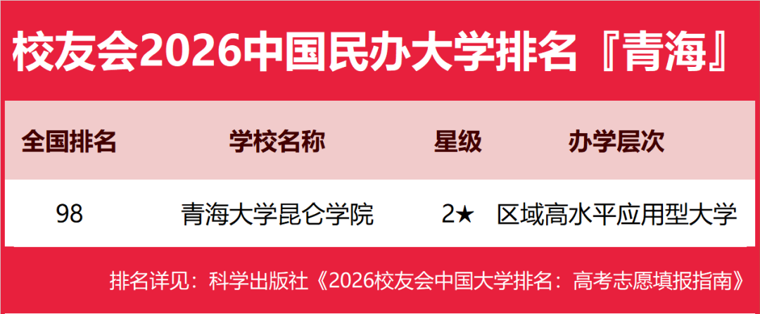 青海大学昆仑学院位列2026青海省民办大学排名第一