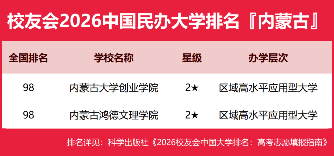 内蒙古大学创业学院、内蒙古鸿德文理学院2026内蒙古自治区民办大学排名并列第一