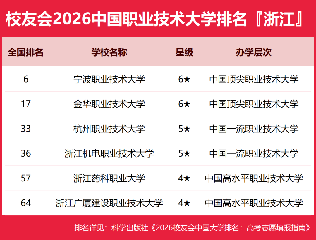 宁波职业技术大学位居2026浙江省职业技术大学排名榜首
