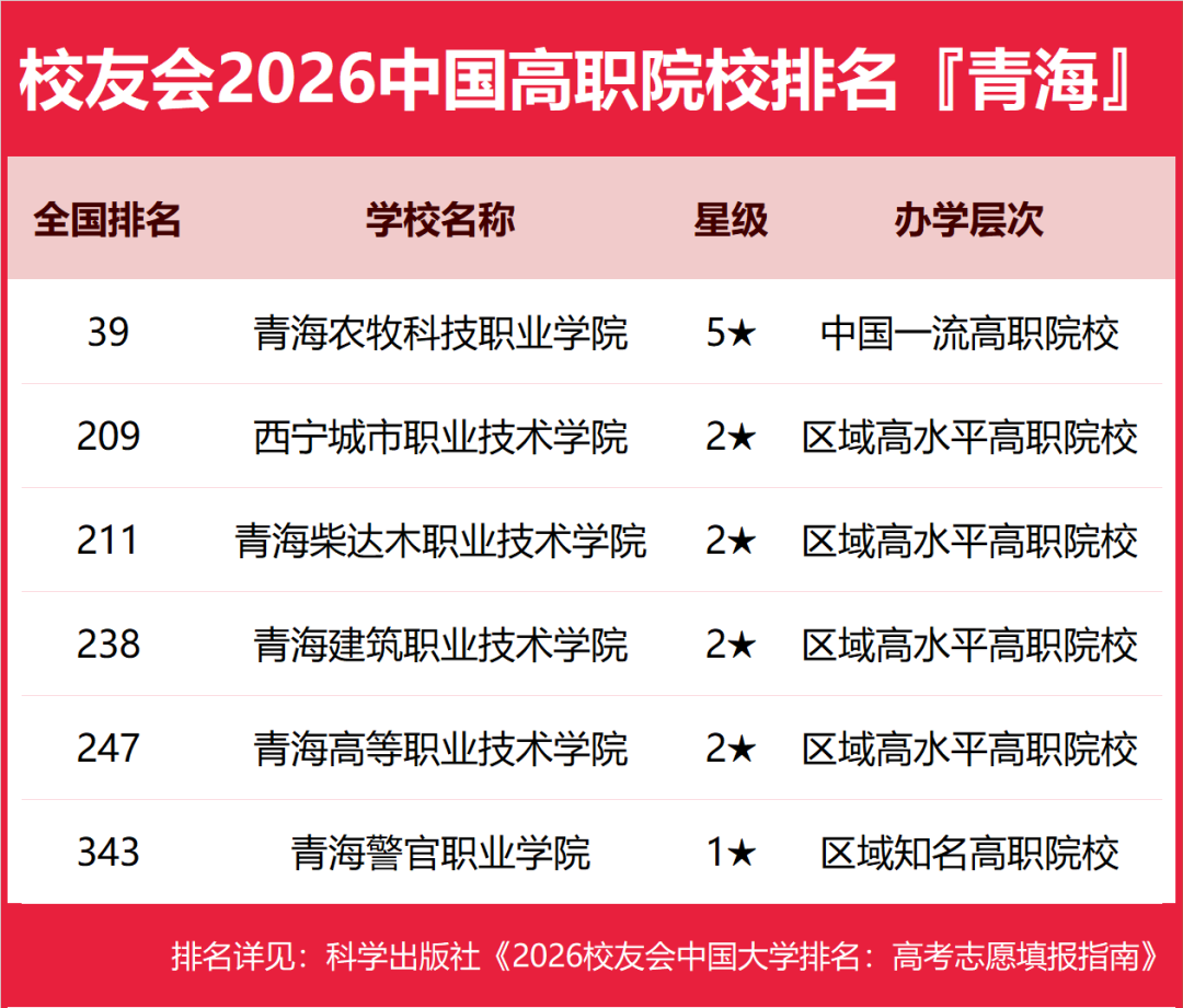 青海职业技术大学位居2026青海省职业技术大学排名榜首