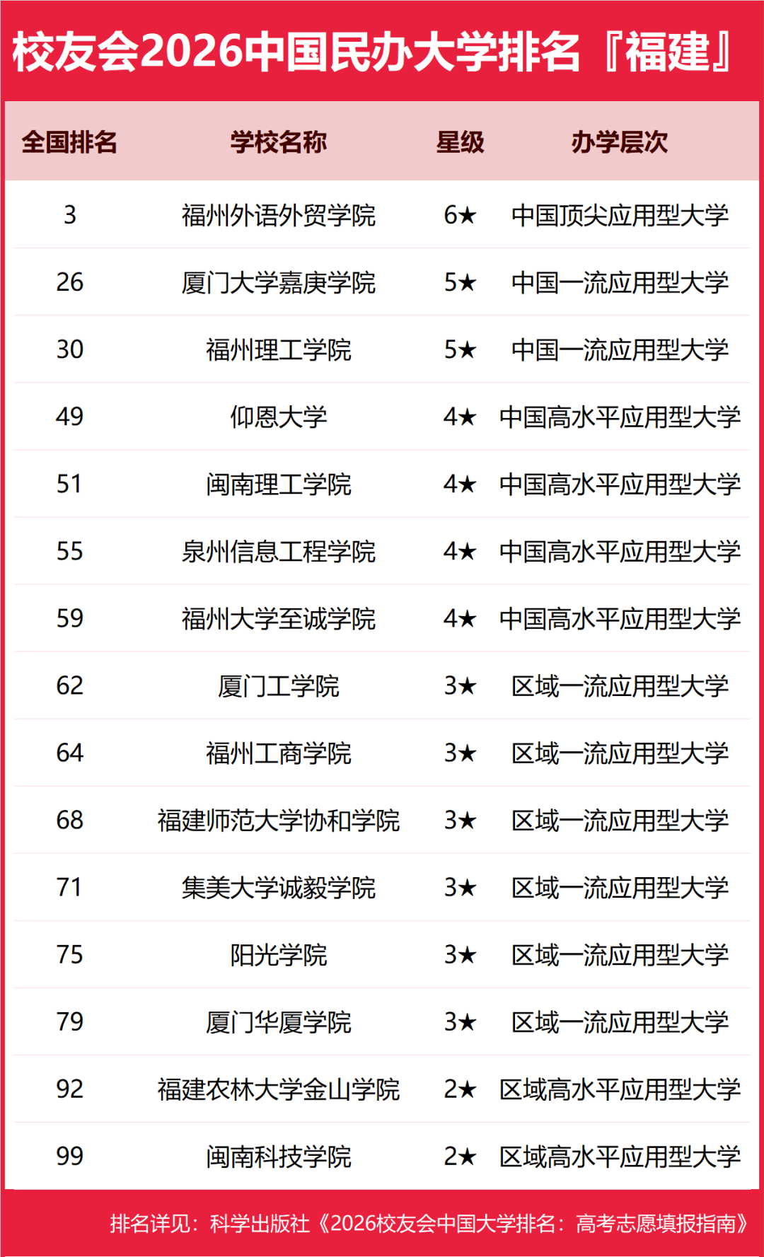 福州外语外贸学院位列2026福建省民办大学排名第一