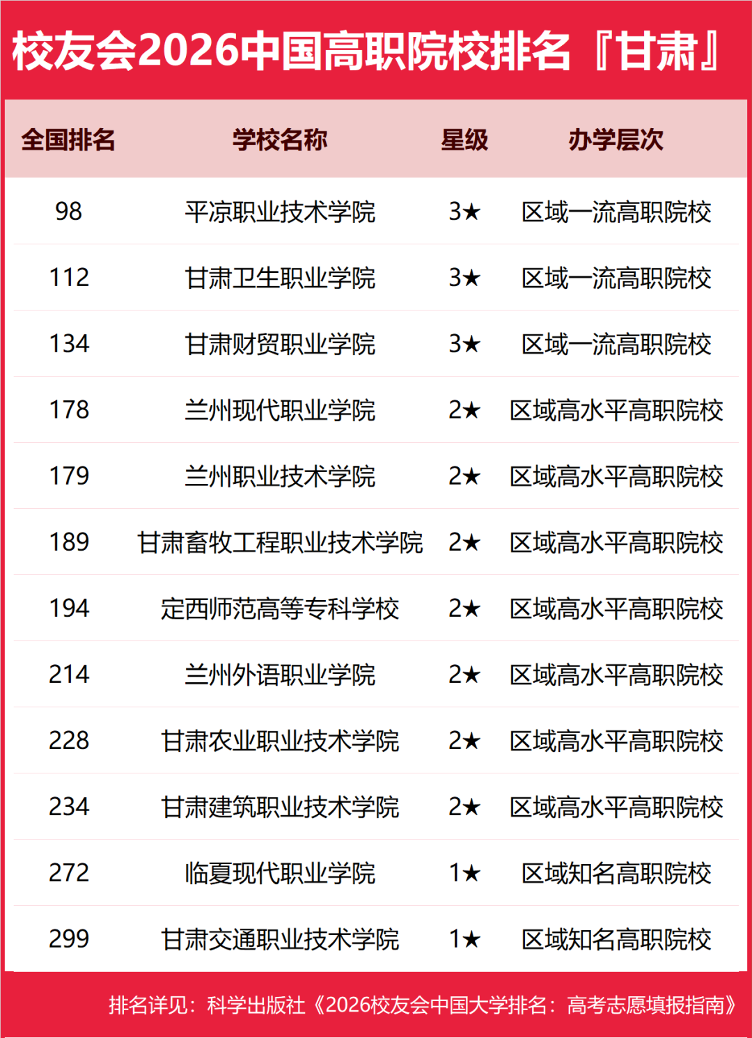 平凉职业技术学院问鼎2026甘肃省高职院校排名冠军