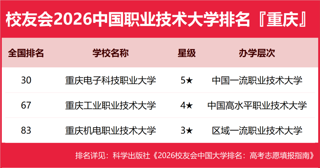 重庆电子科技职业大学位居2026重庆市职业技术大学排名榜首