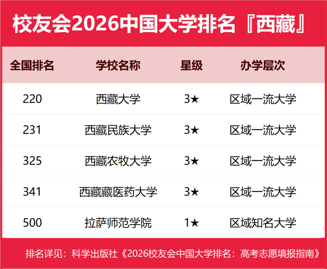 西藏大学问鼎校友会2026西藏自治区大学排名首位