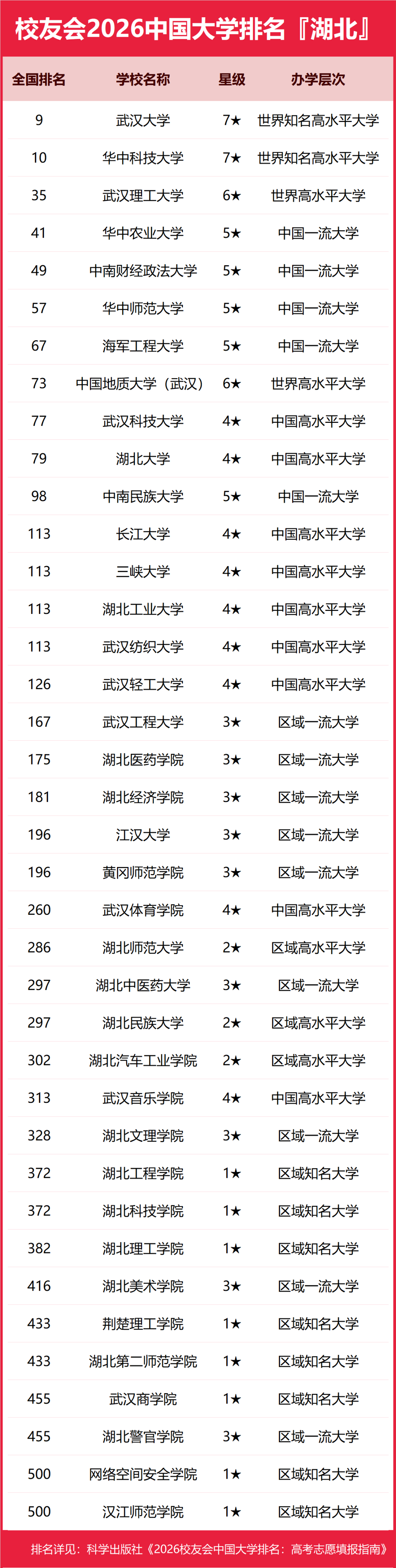 武汉大学问鼎校友会2026湖北省大学排名首位