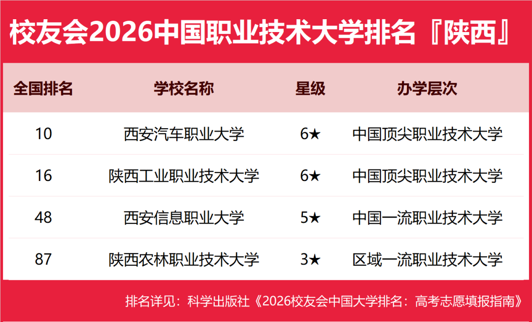 西安汽车职业大学位居2026陕西省职业技术大学排名榜首