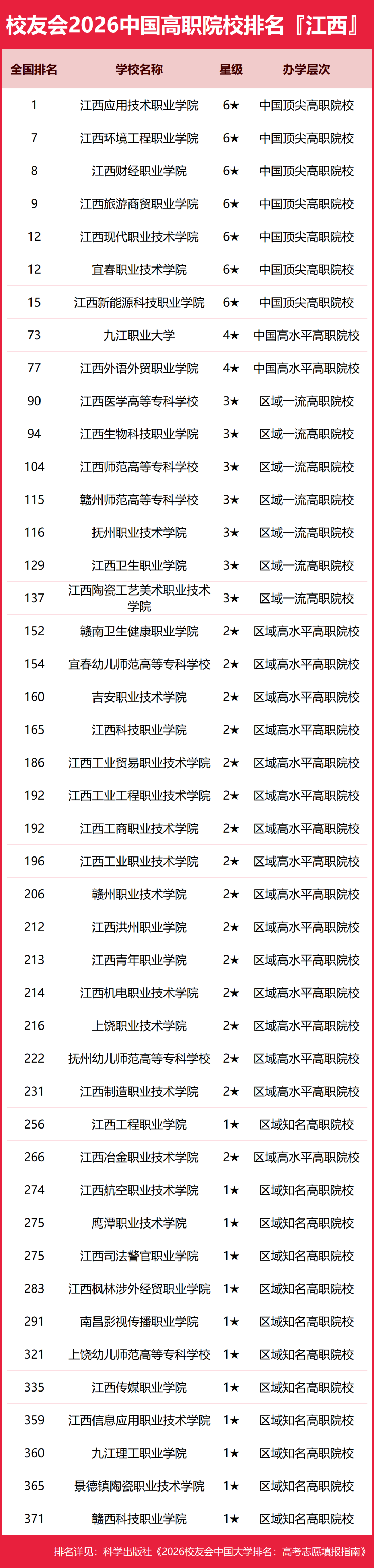 江西应用技术职业学院问鼎2026江西省高职院校排名冠军