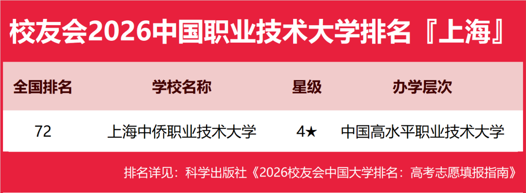 上海中侨职业技术大学位居2026上海市职业技术大学排名榜首