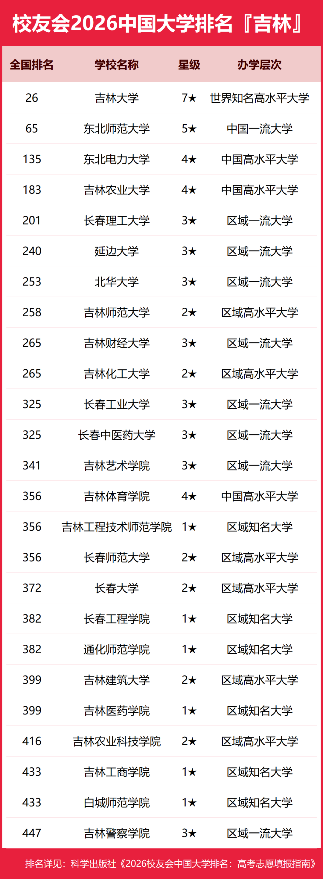 吉林大学问鼎校友会2026吉林省大学排名首位