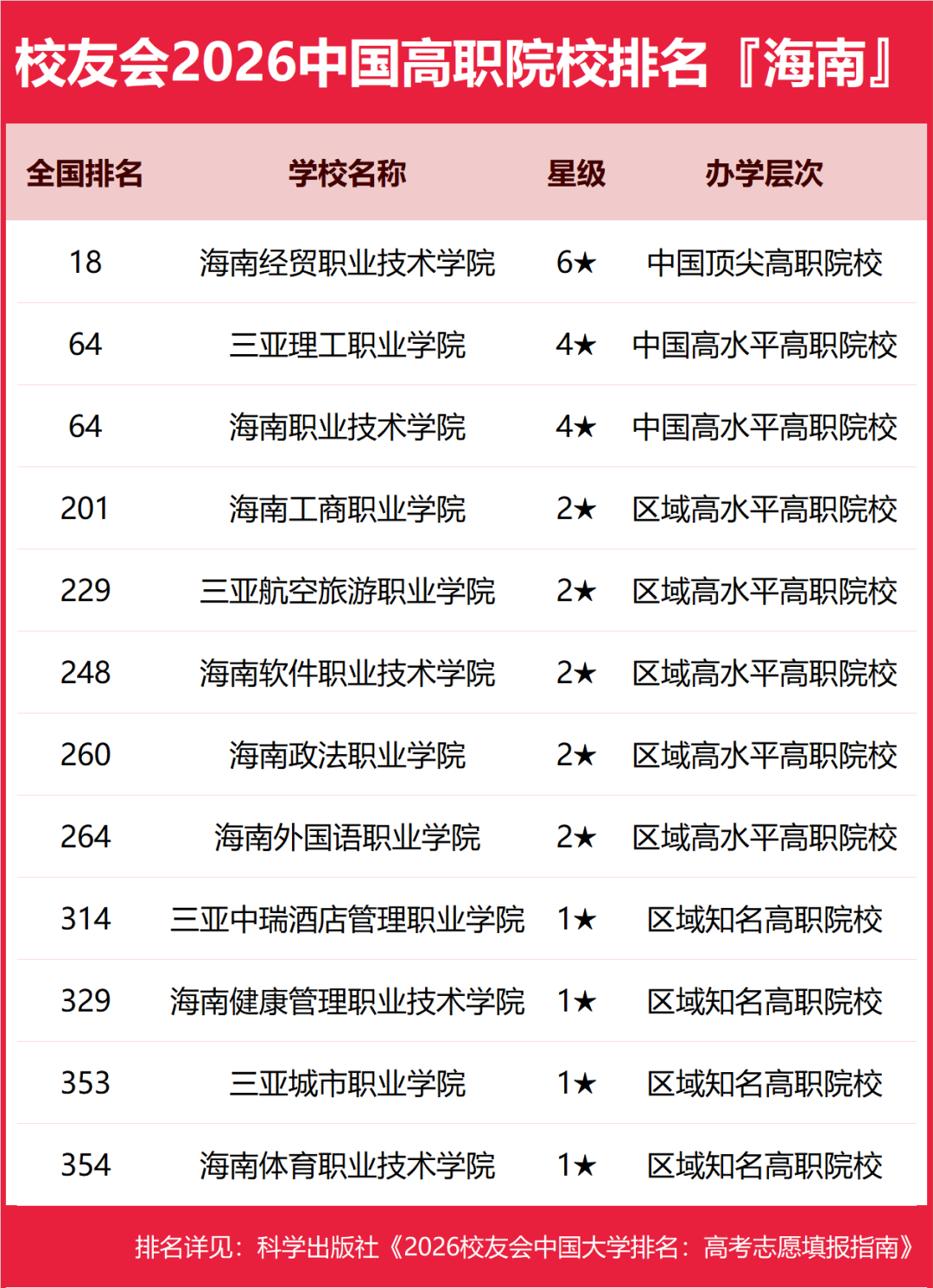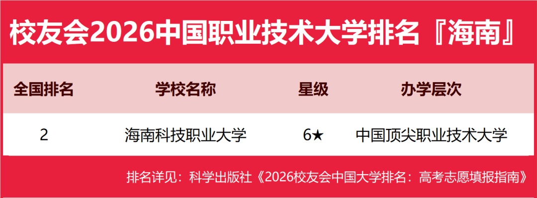 海南科技职业大学位居2026海南省职业技术大学排名榜首