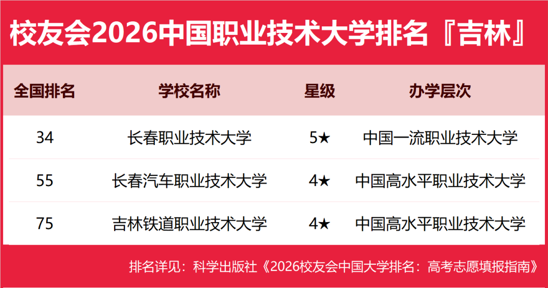 长春职业技术大学位居2026吉林省职业技术大学排名榜首