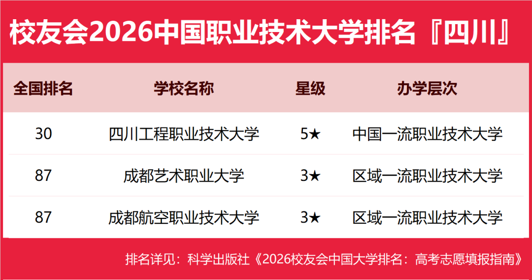 四川工程职业技术大学位居2026四川省职业技术大学排名榜首