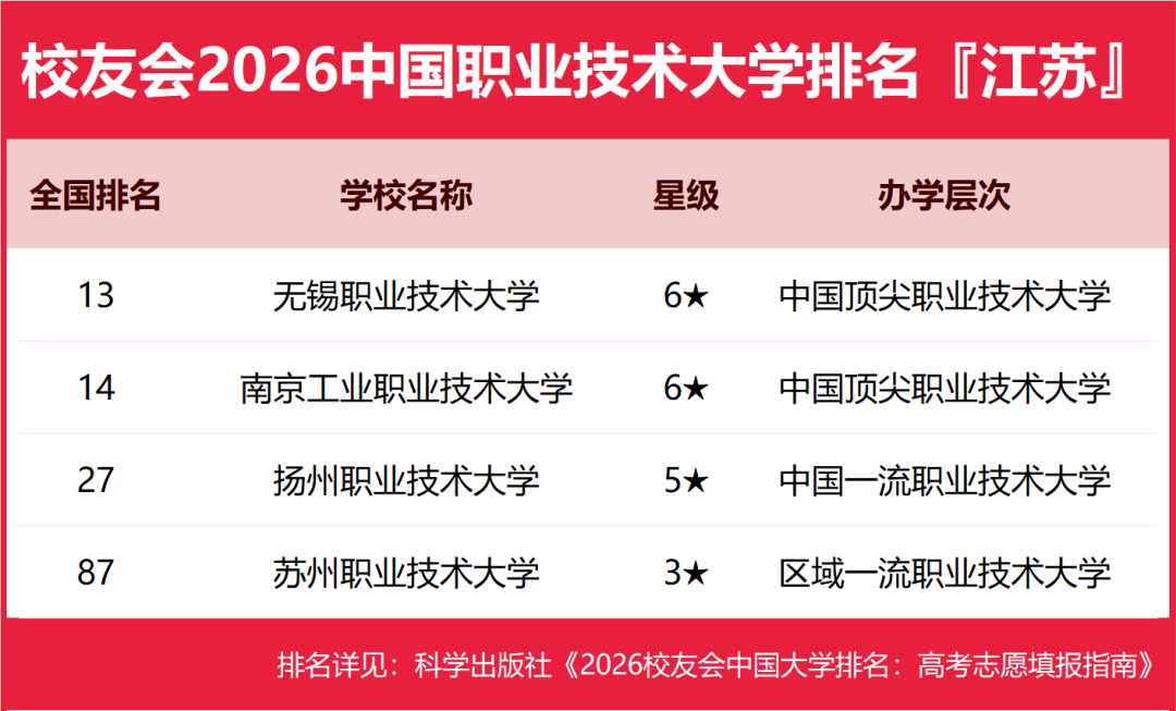 无锡职业技术大学位居2026江苏省职业技术大学排名榜首