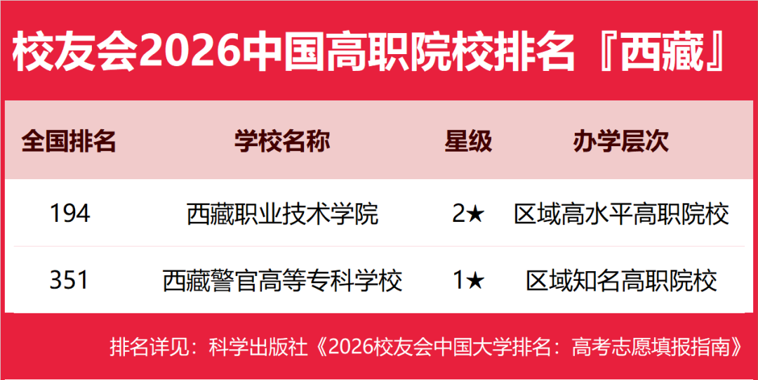 西藏职业技术学院问鼎2026西藏自治区高职院校排名冠军