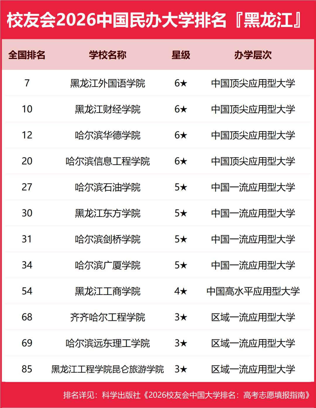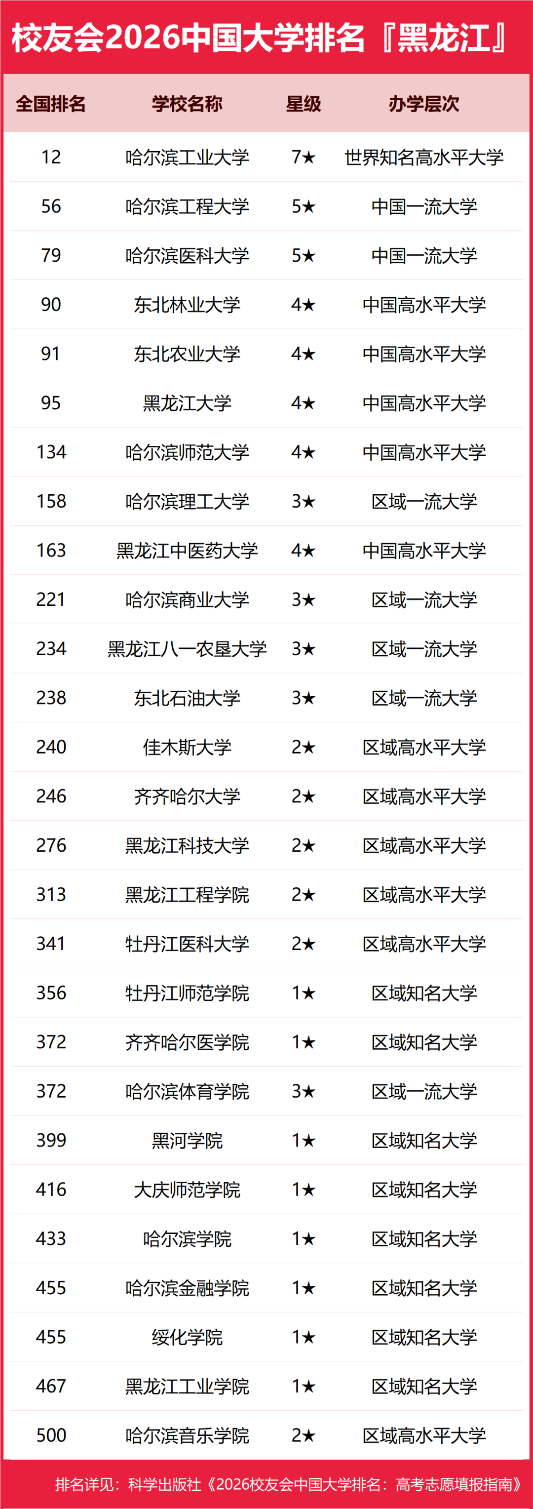 哈尔滨工业大学问鼎校友会2026黑龙江省大学排名首位