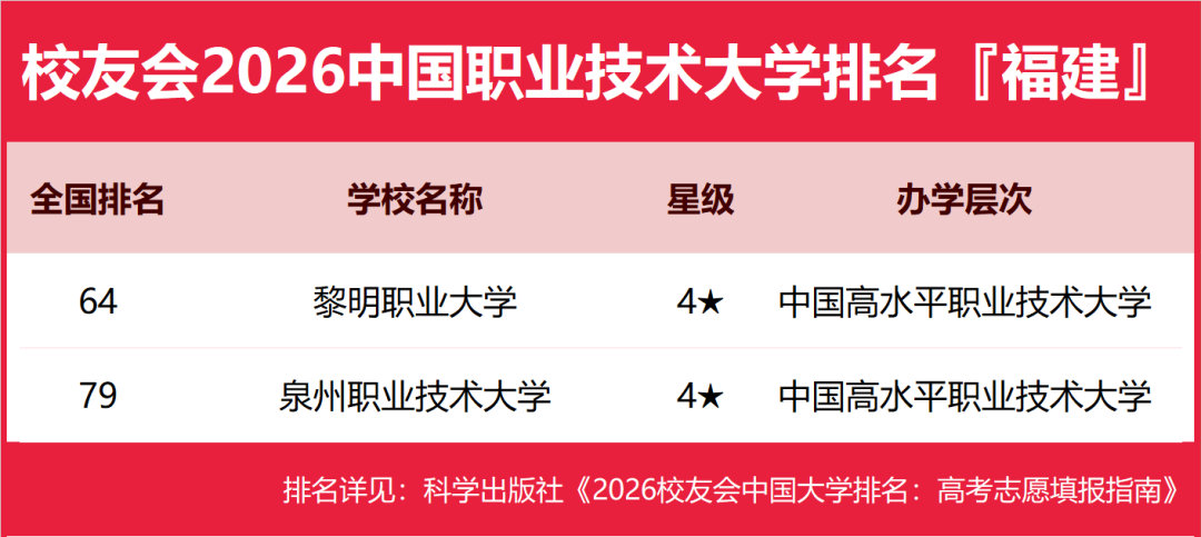黎明职业大学位居2026福建省职业技术大学排名榜首