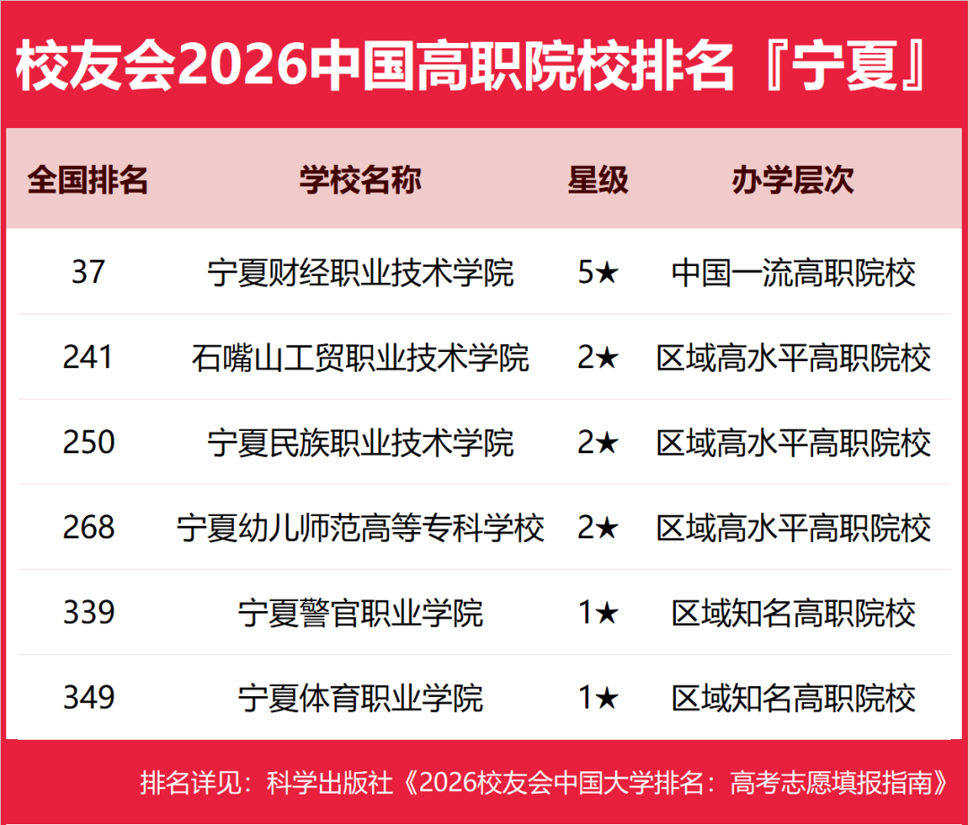 宁夏财经职业技术学院问鼎2026宁夏回族自治区高职院校排名冠军