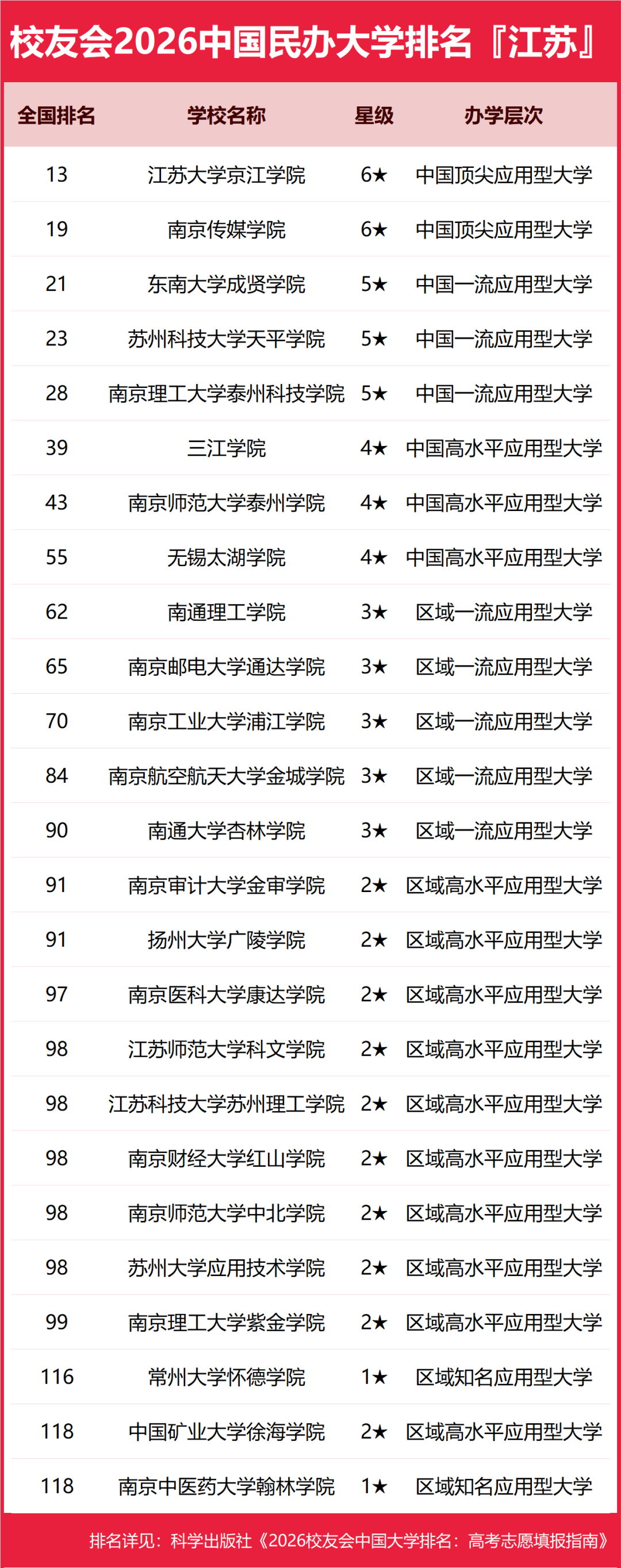 江苏大学京江学院位列2026江苏省民办大学排名第一