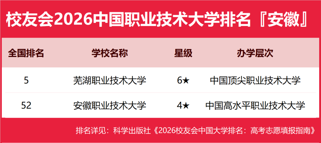 芜湖职业技术大学位居2026安徽省职业技术大学排名榜首