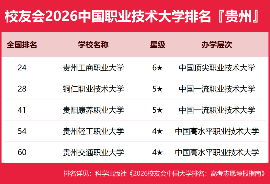 贵州工商职业大学位居2026贵州省职业技术大学排名榜首