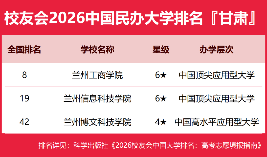 兰州工商学院位列2026甘肃省民办大学排名第一
