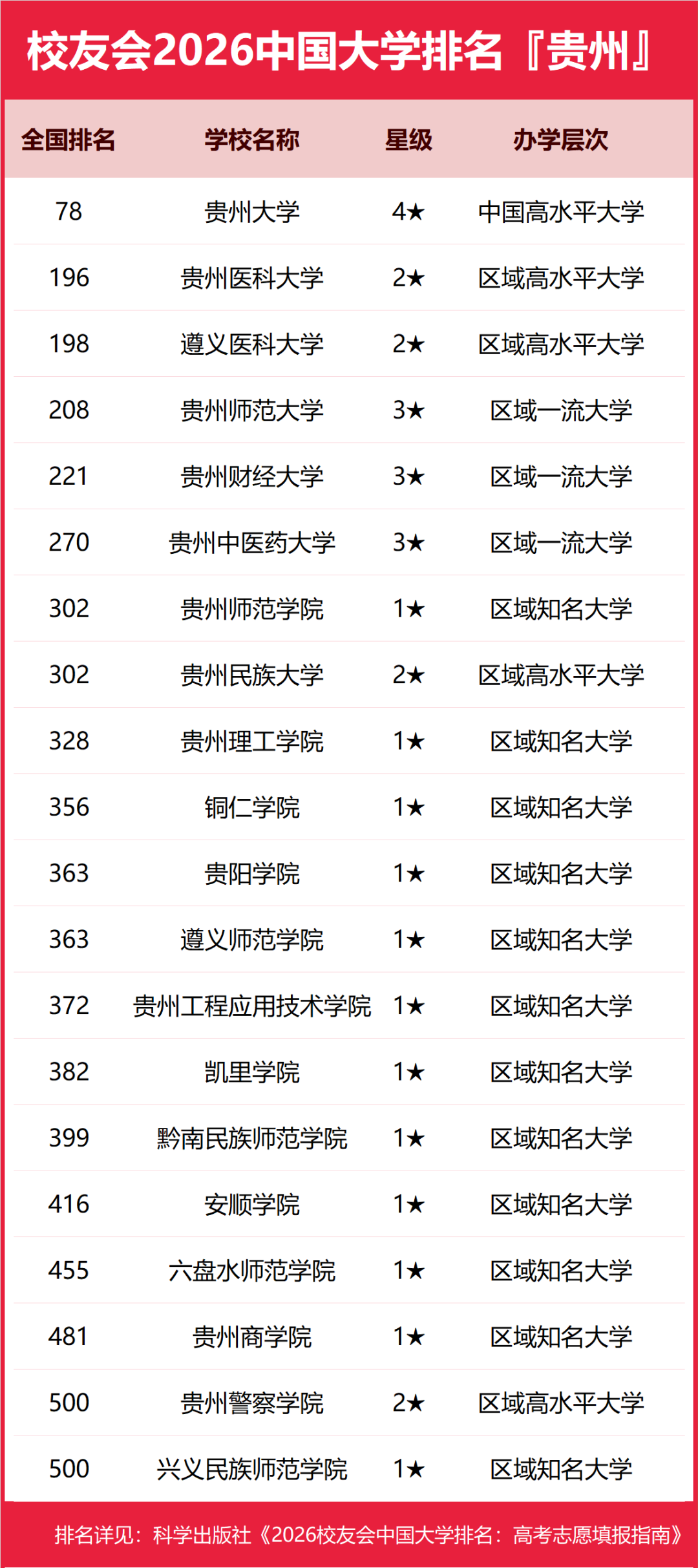 贵州大学问鼎校友会2026贵州省大学排名首位