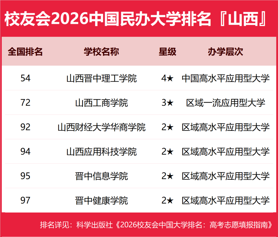 山西晋中理工学院位列2026山西省民办大学排名第一