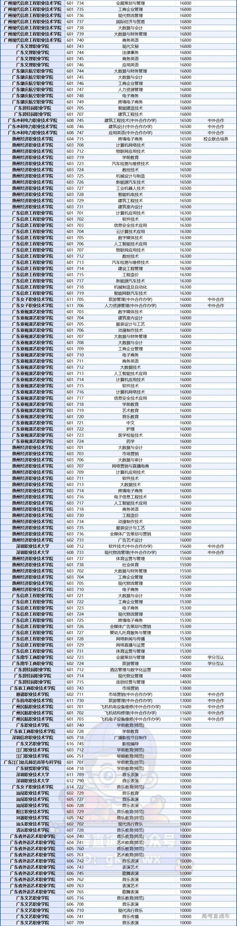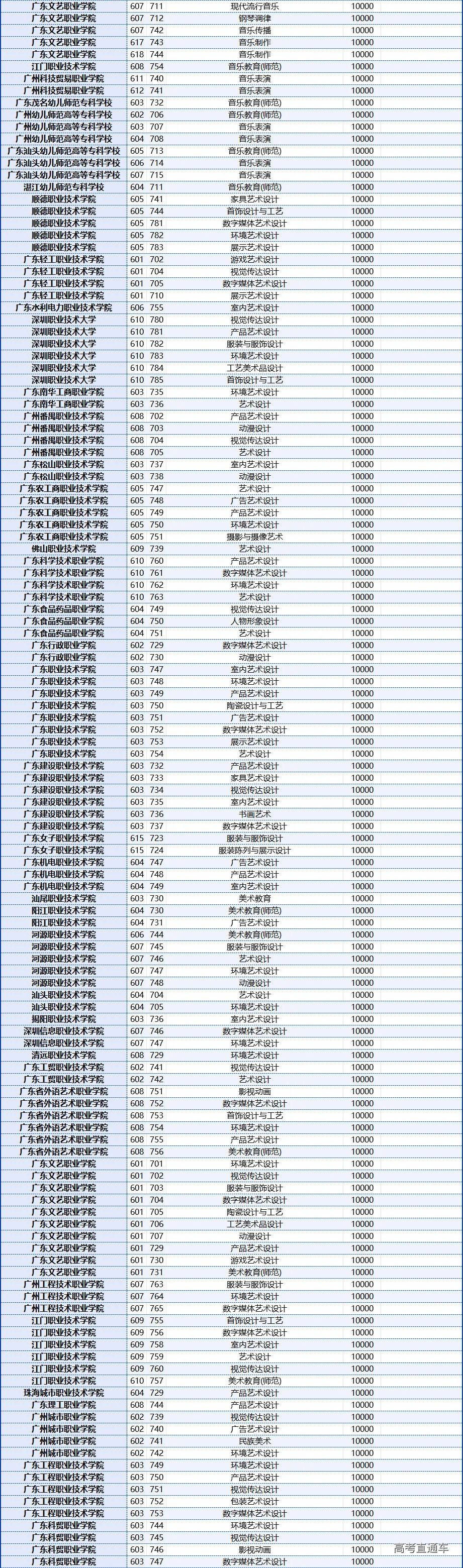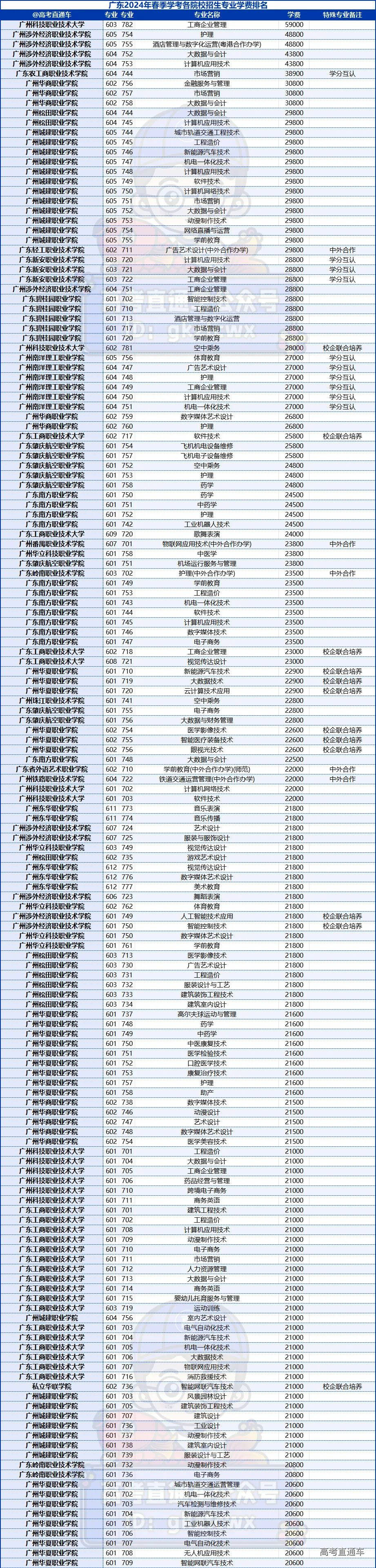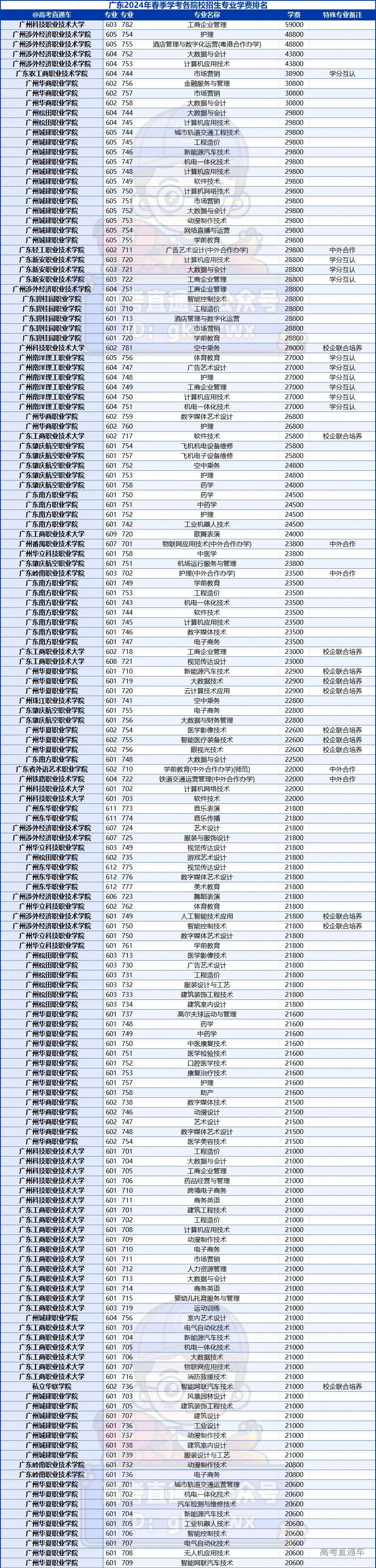 从各校在学考招生的全部专业来看,绝大多数公办院校的专业学费均低于民办院校,当然也有少量专业较为特殊,如广东轻工职业技术学院的广告艺术设计(中外合作办学)这一专业,学费高达29800元。