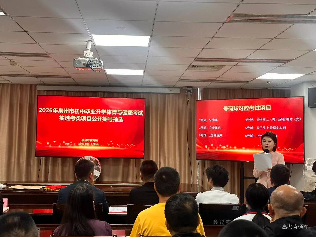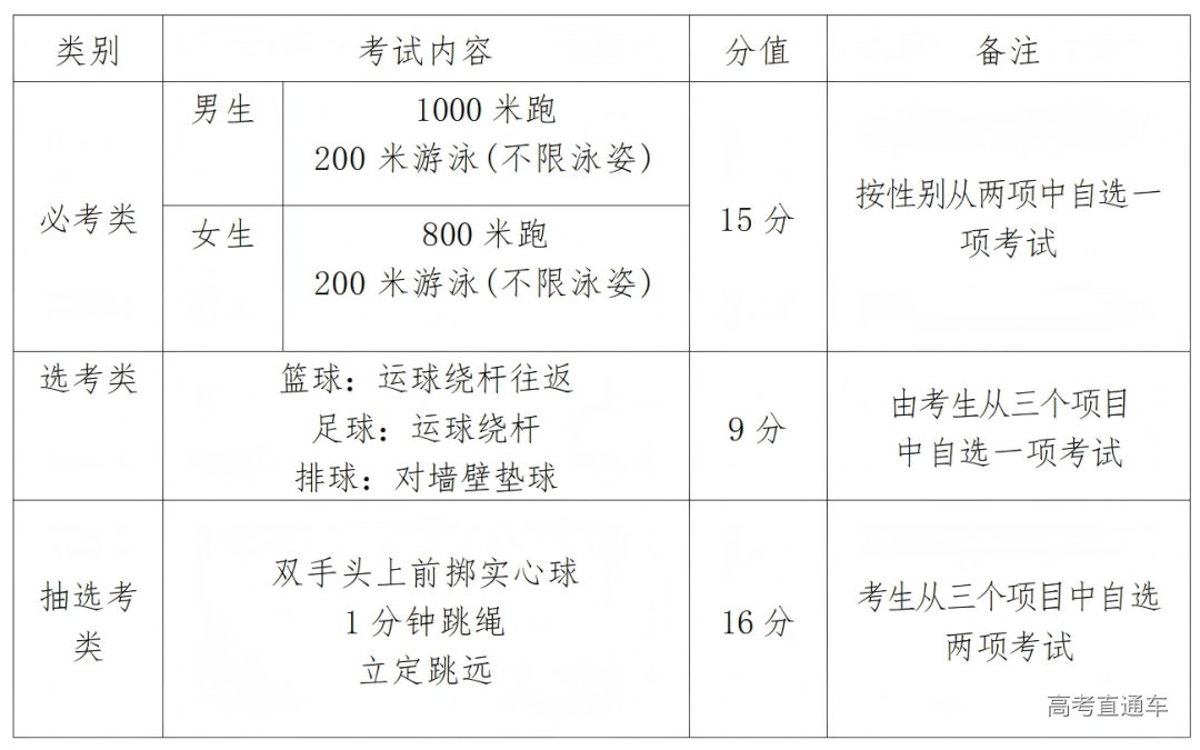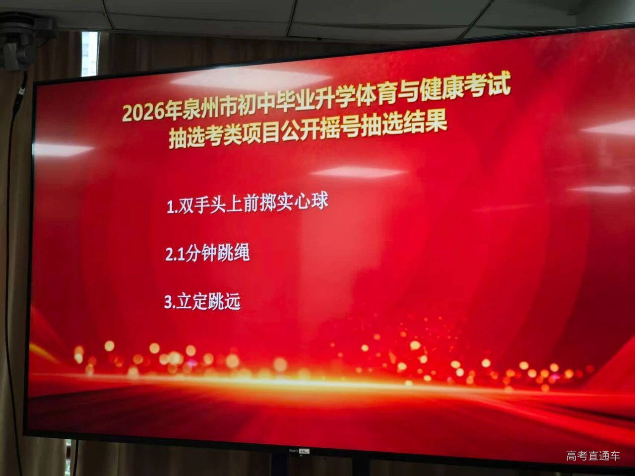 刚刚 2026年泉州市 初中毕业升学体育与健康考试 抽选考类项目确定了 今天下午,泉州市教育局对2026年初中毕业升学体育与健康考试抽选考类项目进行摇号抽选。 此次抽选考类从六项:50米跑、立定跳远、1分钟跳绳、引体向上(男)/斜身引体(女)、双手头上前掷实心球、1分钟仰卧起坐中随机抽选三项。 经摇号,最终确定 抽选考项目为:双手头上前掷实心球、1分钟跳绳、立定跳远。(考生从这三个项目中自选两项考试) 必考类项目为:1000米(男)/800米(女),200米游泳(不限泳姿),考生根据性别自行选择1项考试。 选考类项目为:篮球:运球绕杆往返、足球:运球绕杆、排球:对墙壁垫球,由考生从三个项目中自选一项考试。 考试分值 祝考生好运! |
