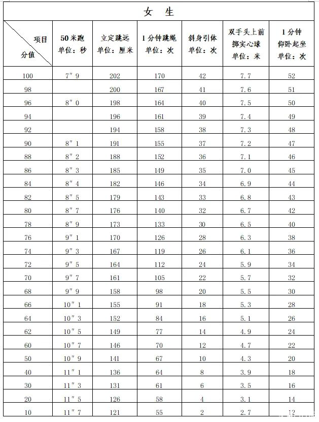 调整后总分值40分不变,其中必考类15分(1000米/800米跑、200米游泳)、选考类9分(“三大球”)、抽选考类16分(50米跑、立定跳远、1分钟跳绳、引体向上/斜身引体、双手头上前掷实心球、1分钟仰卧起坐)。各项目测试细则与评分标准仍按《福建省初中毕业升学体育考试指导意见(试行)》和《福建省初中毕业升学体育与健康考试实施方案(试行)》执行。