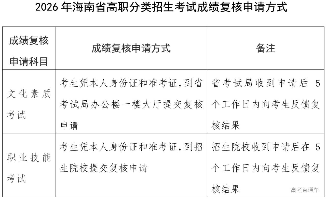 附件:1.2026年海南省高职分类招生考试成绩复核申请方式