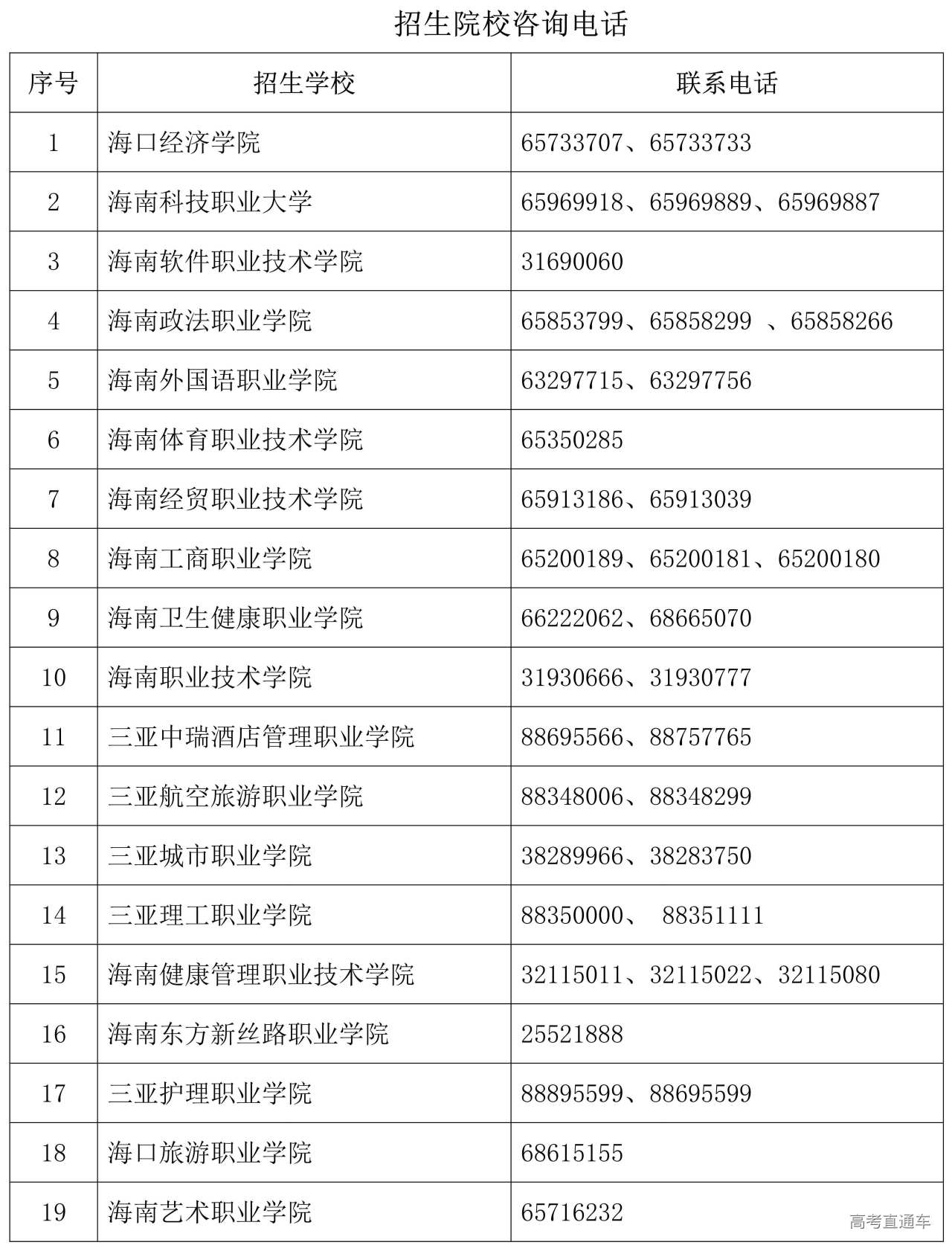 2.招生院校咨询电话