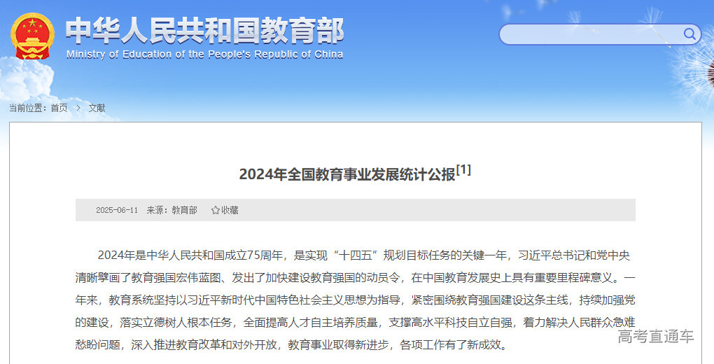 6月11日,教育部网站发布2024年全国教育事业发展统计公报。
