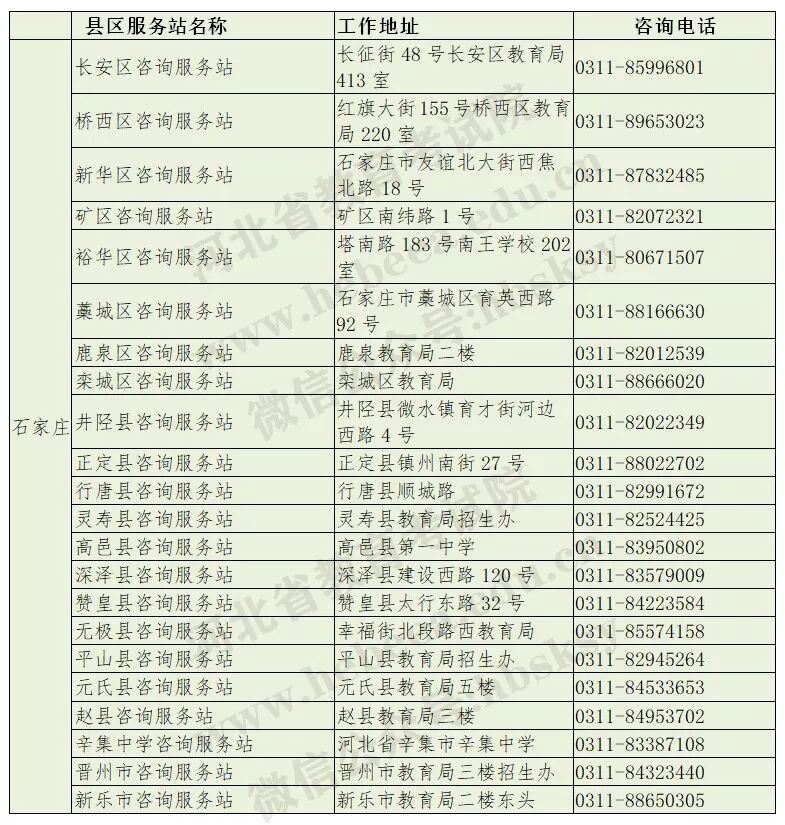 各位考生:各市、县(区)咨询服务站从7月7日开始工作,8月16日结束。每天工作时间:上午9:00-11:30,下午15:00-17:30。