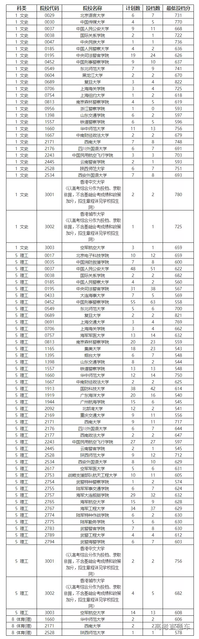 海南省普通高等学校招生本科提前批第一志愿投档分数线