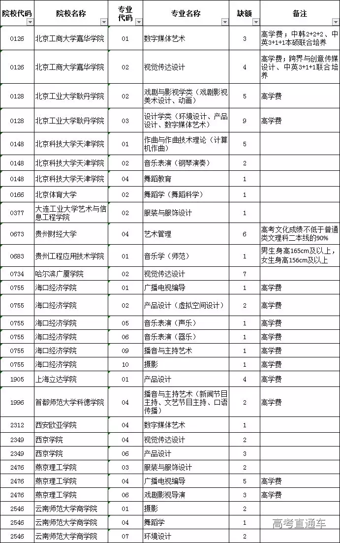 附件:艺术类平行志愿本科院校缺额情况统计表