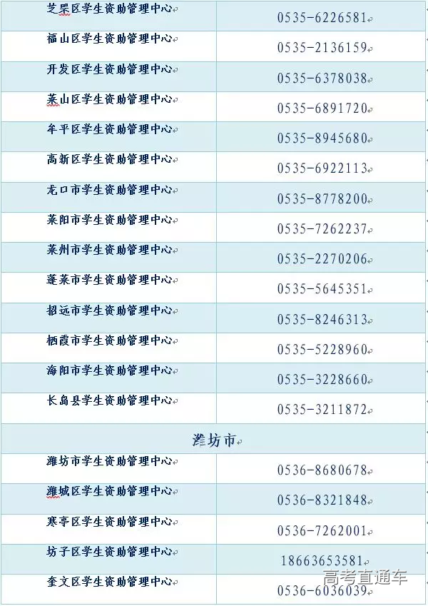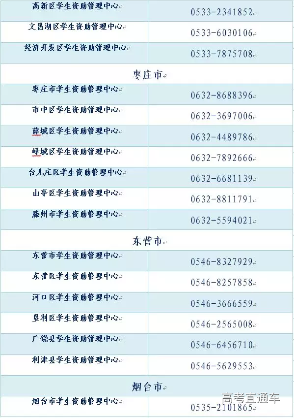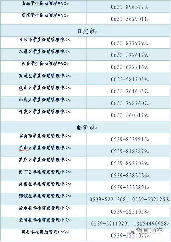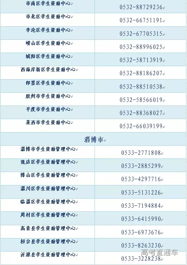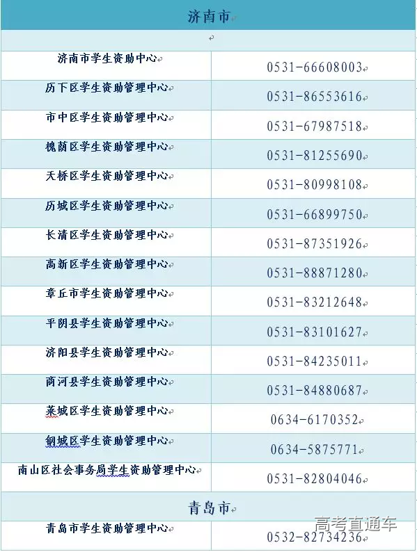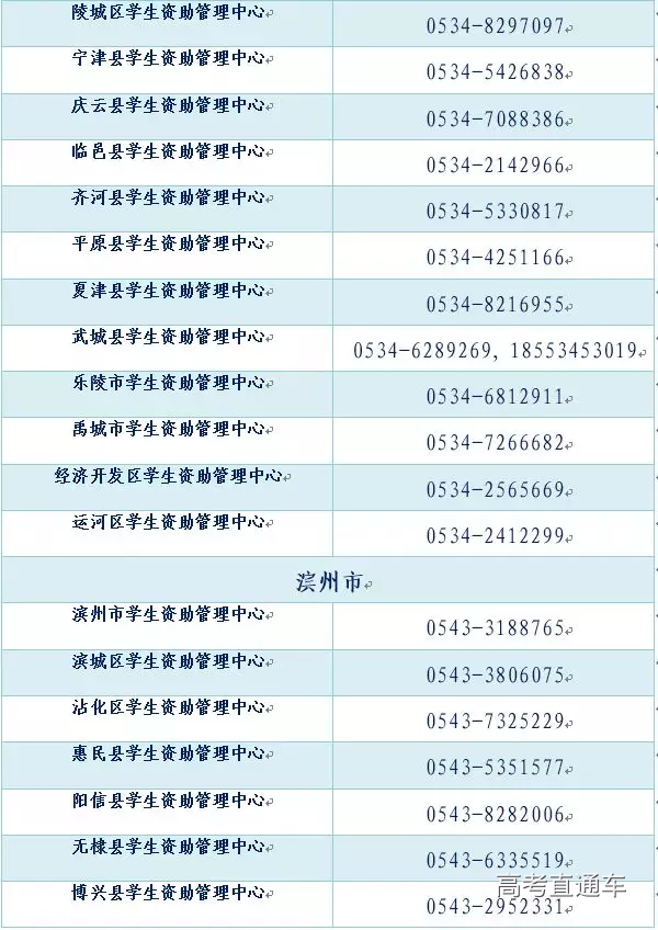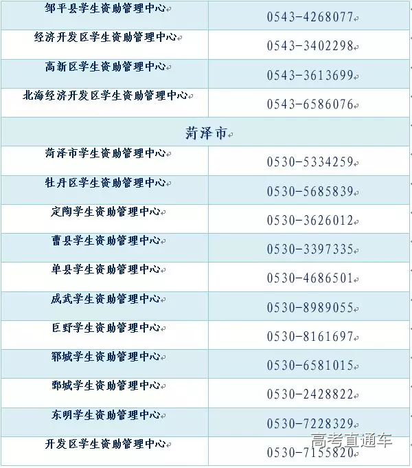全省各市、县(市、区)学生资助热线电话