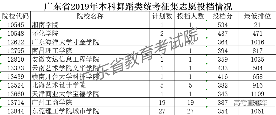 其他各类投档线详见:广东省2019年本科征集志愿投档情况(文/理/体育/美术/音乐/舞蹈/编导)