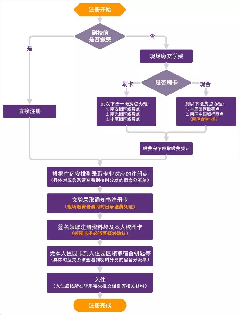 【注意】注册现场仅需出示《录取通知书》(现场缴费者需同时出示《录取通知书》及足额缴费的票据),建议单独随身携带,以免与其他个人材料混淆造成查找不便或材料遗失。