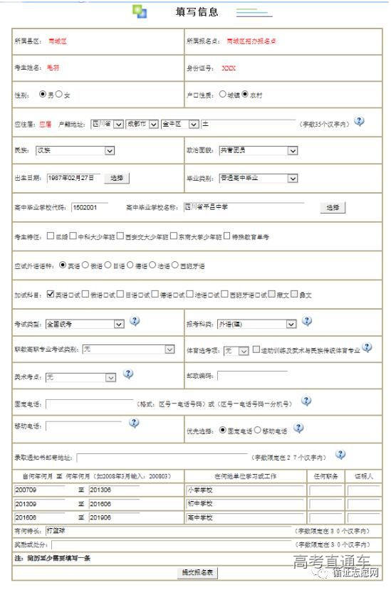 大家可以看看,网上报名平台的页面长什么样!!需要填写什么信息: